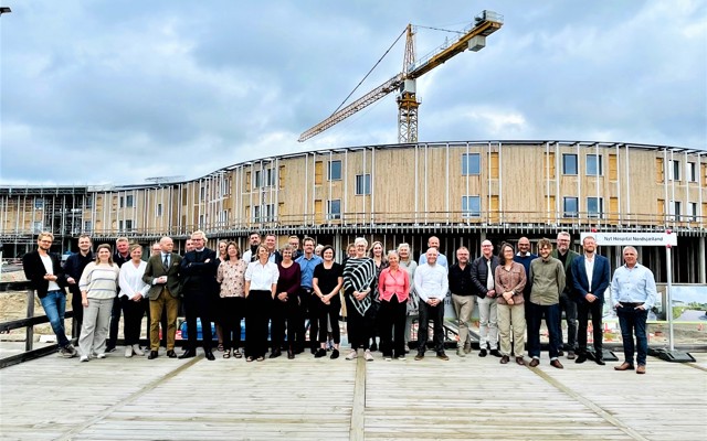 Undervejs i bygherremødet blev der også tid til et fællesbillede med alle deltagerne på besøgscenterets terrasse.