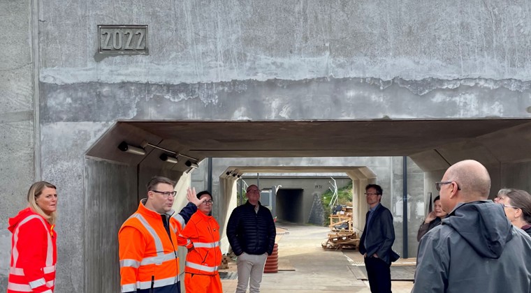 Bygherremødet startede med en tur til den næsten færdigbyggede Favrholm Station, som forventes at stå klar til brug i december i år. Stationen kommer til at blive trafikalt knudepunkt og skal gøre det nemt for beboere og brugere at komme til og fra Favrholm med den kollektive transport.