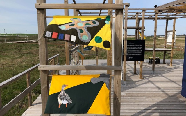 Teatergruppen Mastodonternes fine systue, som normalt laver kostumer til de mange skuespillere, har påtaget sig opgaven at lave 11 flag som tilsammen illustrerer det nye Favrholm. Der skulle tænkes kreativt, og prinsessekjolerne og ridderkostumerne blev sat på pause. Nu skulle der laves flag.